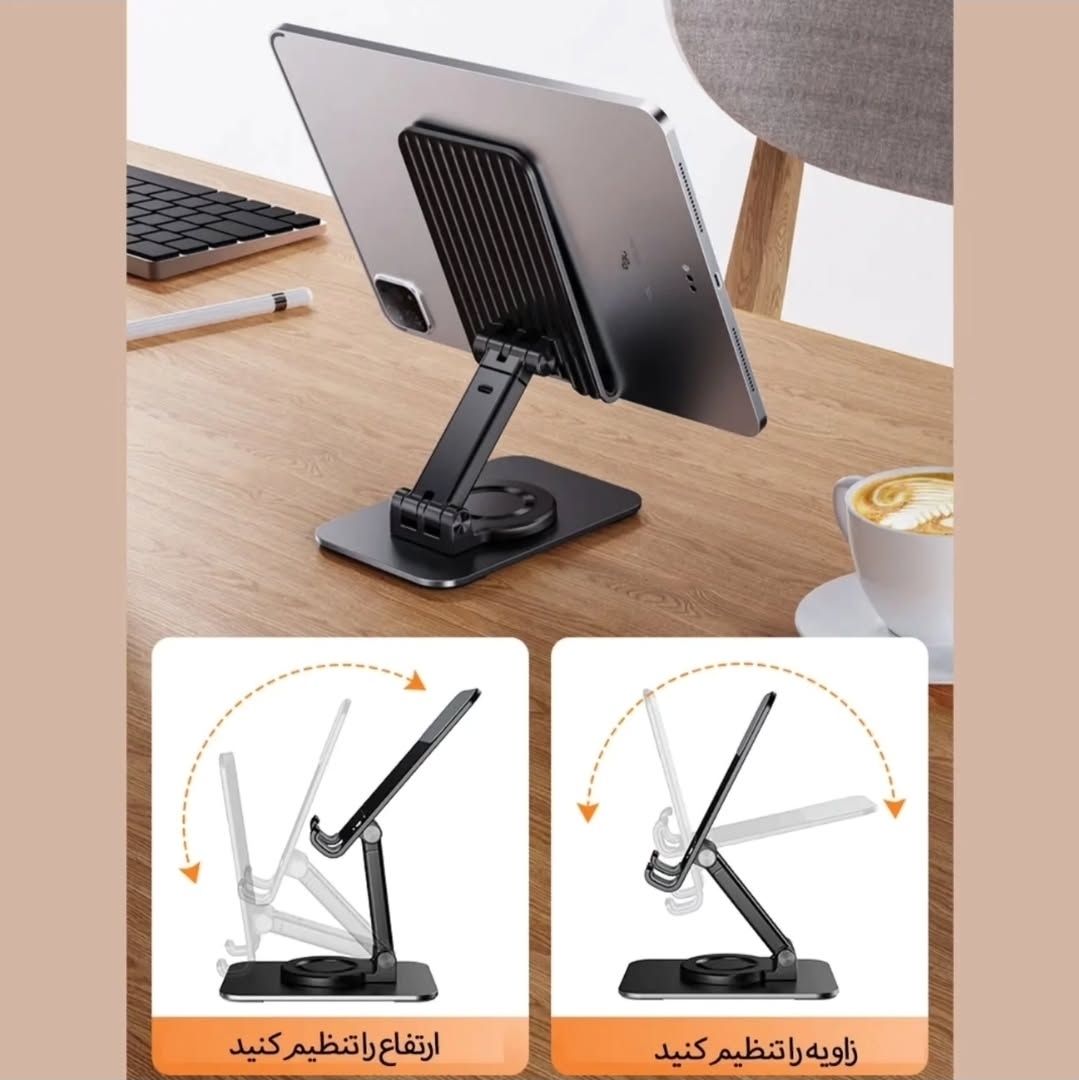 طراحی راحت و تاشو برای حمل نقل ساده. چرخش ۱۸۰ درجه برای بهترین زاویه دید. مناسب برای گوشی و گوشی و تبلت (۷تا ۱۳ اینچ) کیفیت عالی و ساخته شده از پلاستیک مقاوم.