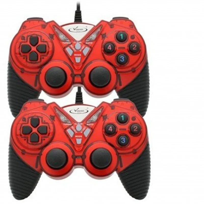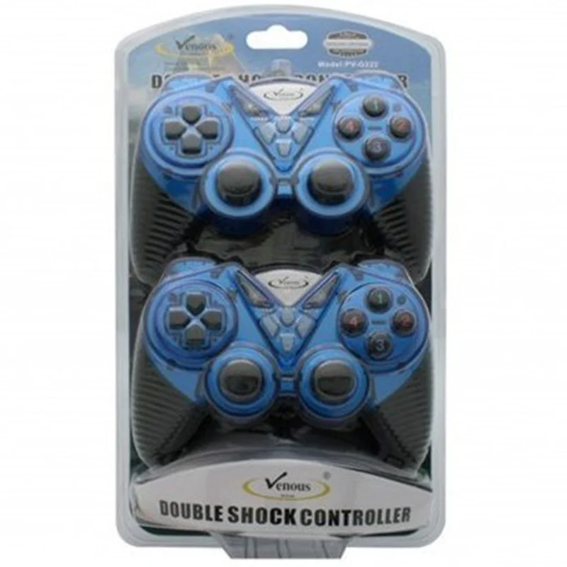 مزیت بزرگ خرید دسته بازی دوبل این است که اولا یک بار برای بسته بندی دستگاه هزینه می کنید و نسبت به خرید جداگانه دسته بازی تکی، قیمت ارزان تری می پردازید و در ثانی، به دلیل وصل بودن کابل USB دو دسته، تنها یکی از پورت های USB کامپیوتر شما اشغال می شود.دسته بازی دوبل ونوس مدل PV-G222 شامل دو گیم پد است که هر کدام 20 دکمه مختلف دارند و با یک نرم افزار مپینگ، انعطاف و آزادی عمل زیادی در اختیار شما قرار می دهند. جوی استیک های آنالوگ دسته بازی دوبل ونوس مدل PV-G222، عملکردی نرم و روان دارند و چهار عدد دکمه شانه ای یا بامپر نیز در اختیارتان قرار می گیرد که برای شلیک در فضای بازی، بهترین گزینه است