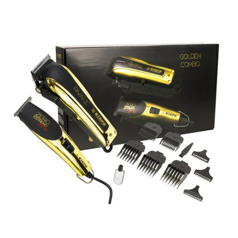 ست اصلاح کیپه شامل خط زن و ریش تراش Kiepe set golden combo کیت ترکیبی طلایی Kiepe Rivale، کیت گیره و کیت اصلاح که شامل گیره شارژی حرفه ای Rivale است که می تواند با کابل یا بدون کابل کار کند، با موتور DC با قدرت بالا و باتری لیتیومی با ماندگاری 120 دقیقه تا 150 دقیقه با شارژدهی 45 دقیقه. -60 دقیقه، تیغه های فولادی تیز با کیفیت بالا و حرفه ای با سیستم محافظت از پوست یکپارچه، بدنه هم عملی و هم با طراحی مدرن. تریمر طناب دار حرفه ای که برای تکمیل و پیرایش عالی است، با تیغه های فولادی که تضمین می کند دقیقاً همان سبکی را که می خواهید به دست می آورید که تا حداقل طول تا 0 میلی متر برش دهید. بسته ترکیبی شامل: برای ریوال کلیپر ، محافظ تیغه، برس تمیزکننده، بطری روغن، 5 شانه اتصال مغناطیسی جدید : 1.5، 3، 6، 10 و 13 میلیمتری، Zero Estremo Pro Trimmer همراه با محافظ تیغه، برس تمیزکننده، بطری روغن و 3 عدد شانه های پیوست 1.5، 4.5 و 6 میلی متر میباشد