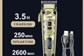 سایر مشخصات : باتری لیتیومی ۲۶۰۰ میلی آمپر، دارای تیغه متالوژیک پودری، دارای تنظیمات سرعت برای انواع موها،نمایشگرLED