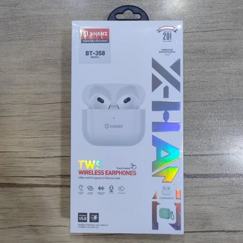ایرپاد بی سیم ایکس هانز مدل BT-358 آخرین سری هدفون های توگوشی بی سیم این کمپانی است . مدل "BT-358" دقیقا هم سایز و مشابه ایرپاد سی 3 طراحی و ساخته شده و تقریبا تمامی ویژگی های آن را داراست.