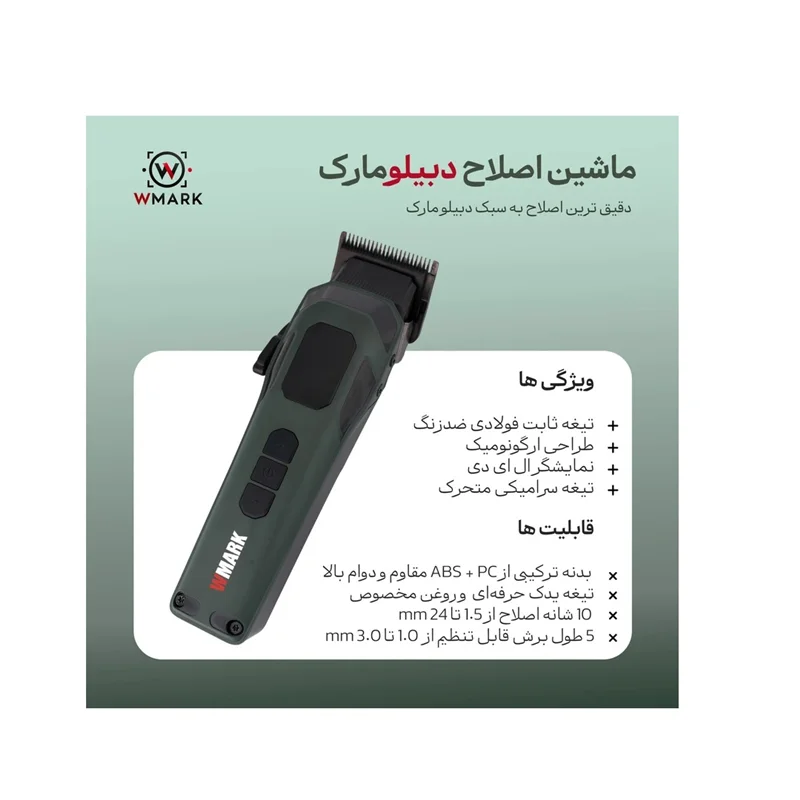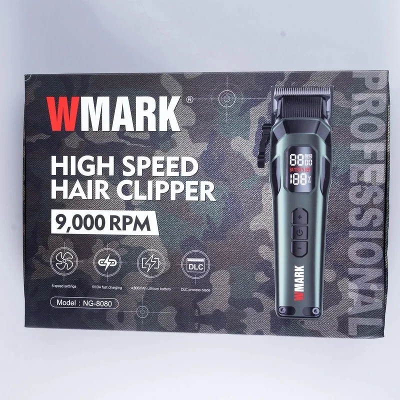 ماشین اصلاح حرفهای مدل NG-8080 برند WMARK قدرت، دقت و نوآوری در یک ابزار حرفهای ماشین اصلاح NG-8080 با فناوریهای پیشرفته و طراحی هوشمند، انتخابی ایدهآل برای آرایشگران حرفهای و استفاده شخصی است. ویژگیهای کلیدی محصول: تیغههای پیشرفته: تیغه ثابت از استیل ضدزنگ 9CR18 با فناوری متالورژی ساخته شده و مقاومت بالا و دقت برش فوقالعادهای دارد. تیغه متحرک سرامیکی با فرآیند DLC اصطکاک و حرارت را کاهش داده و دوام تیغهها را افزایش میدهد. تنظیم 5 سرعت موتور: موتور دستگاه سرعتی بین 7000 تا 9000 دور در دقیقه دارد که برای انواع موها مناسب است. کاربر میتواند سرعت ایدهآل را انتخاب کند. 5 طول برش قابل تنظیم: اهرم فلزی دستگاه امکان تنظیم طول برش در اندازههای 1.0 تا 3.0 میلیمتر را فراهم کرده و اصلاح مدلهای مختلف مو را آسان میکند. باتری قدرتمند: باتری 4600 میلیآمپرساعتی دستگاه بین 260 تا 300 دقیقه کار میکند و در مدت 3 تا 4.5 ساعت شارژ میشود. بدنه مستحکم و طراحی ارگونومیک: بدنه از ترکیب ABS و PC ساخته شده که مقاومت بالایی دارد. طراحی ضدلغزش و اهرم فلزی نرم، استفاده طولانیمدت بدون خستگی را ممکن میسازد. صفحهنمایش LED هوشمند: صفحهنمایش میزان باتری و سرعت موتور را نشان میدهد.